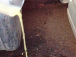 Eles usam um recipiente improvisado para mostrar a quantidade do líquido que vaza a todo o momento. “Olha isso, está saindo da laranja. Imagina como está dentro desse caminhão. Não descarrega, fica 60, 80 horas na fila. Um absurdo. Isso é o suco da laranja podre”, lamentou outro motorista.
